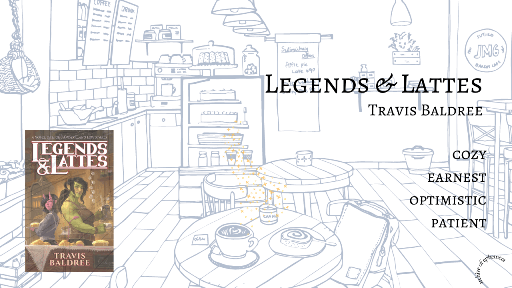One of my favorite parts of this was Viv’s external and internal journey from mercenary to coffee shop owner. Baldree does a wonderful job of opening Viv up gently to her new world, acknowledging that her previous life isn’t something she can immediately shed. And no journey is complete without good traveling companions, and here Baldree really shines. Cal and Thimble are not flashy characters, but they’re written with such generosity and kindness that I immediately fell in love, and by the end of the story, I would have died for them.